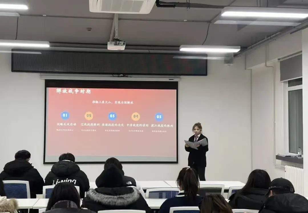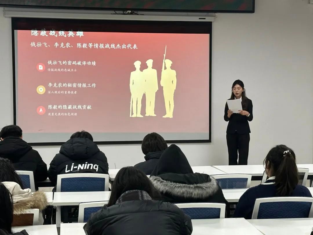 接下来,刘一璇同学讲述了革命先辈的英勇事迹和红色故事,展示了先烈用生命和鲜血铸就的丰功伟绩。学习党史,激励同学们接棒前行,切实把党史教育的成效转化为办实事、开新局的实干实绩,高标准高质量推动党史学习教育走深走实、见行见效。通过讲述伟大历史人物、革命先辈的人生故事、奋斗故事,能够教育引导全党大力发扬红色传统、传承红色基因,使同学们进一步学习掌握党史知识,坚定理想信念,永葆听党话、跟党走的政治本色。