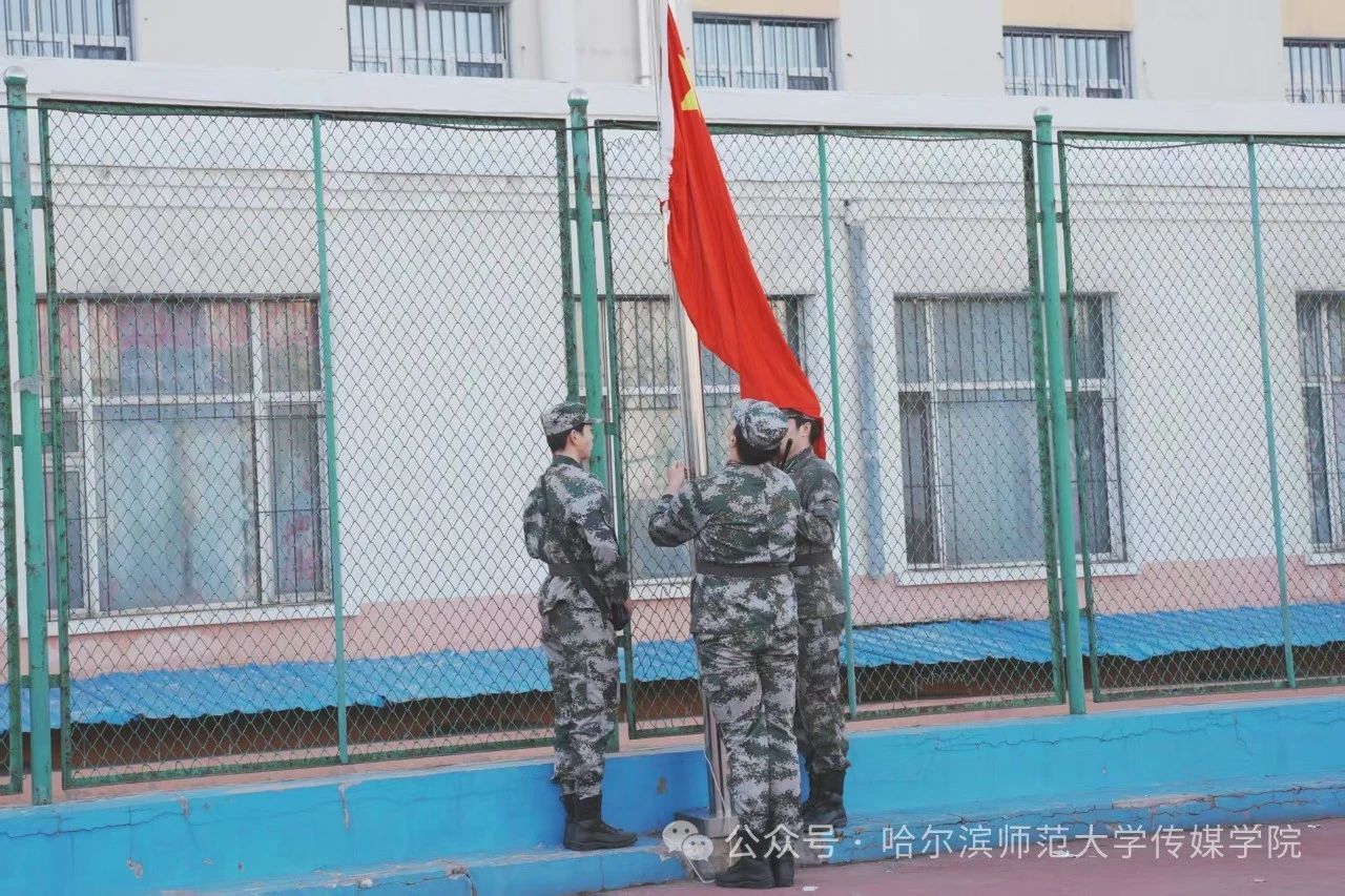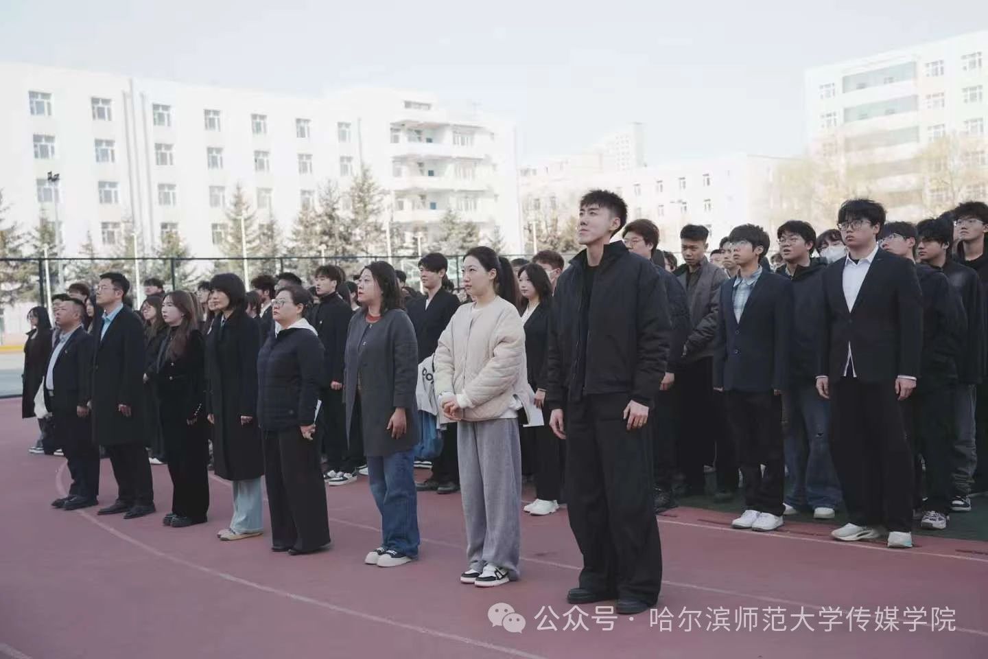 为深入学习贯彻习近平新时代中国特色社会主义思想,加强爱国主义教育,引导学生坚定文化自信,传承中华优秀传统文化,传媒学院于4月23日上午7时在江南校区体育场举行“典籍承文脉 奋进新征程”主题升旗仪式。学院党委副书记曲智坤、副处级辅导员孙慧博、学工办主任郑春晓、团委书记芦畅,以及全体辅导员、哈尔滨师范大学国旗护卫队、2024级全体学生出席参加。仪式由辅导员包仁泽主持。